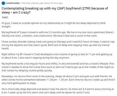 Woman Considering Breaking Up With Her Boyfriend To Improve Her Sleep 9honey